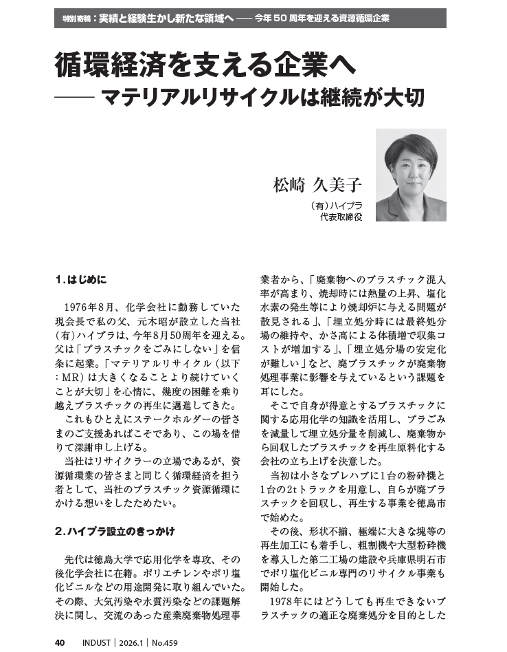 【掲載情報】産廃処理と資源循環の総合専門誌「INDUST」2026年1月号