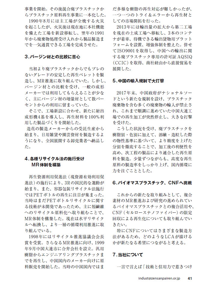 (公社)全国産業資源循環連合会で長年にわたり発行されている産廃処理と資源循環の総合専門誌「INDUST」に掲載されました